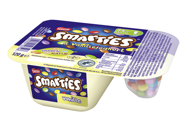 Viele, viele bunte SMARTIES®! Der cremige SMARTIES®-Joghurt ist ein leckerer Nestlé-Snack für Klein und Groß: eine köstliche Kombination aus feinem Joghurt und bunten SMARTIES®. Einzeln löffeln oder zusammen genießen: Einfach den Extrabecher umknicken und die Schokoladen-Dragees in den Joghurt kullern lassen. Sie haben die Wahl zwischen feinem Joghurt, köstlichem Vanillejoghurt oder fruchtigem Erdbeerjoghurt. Mit den bunten SMARTIES® kann man auch lustige Gesichter legen oder untereinander die Farben tauschen - der Kreativität sind keine Grenzen gesetzt. Ob als Snack für zwischendurch oder als Dessert, SMARTIES®-Joghurt von Nestlé macht einfach Spaß!